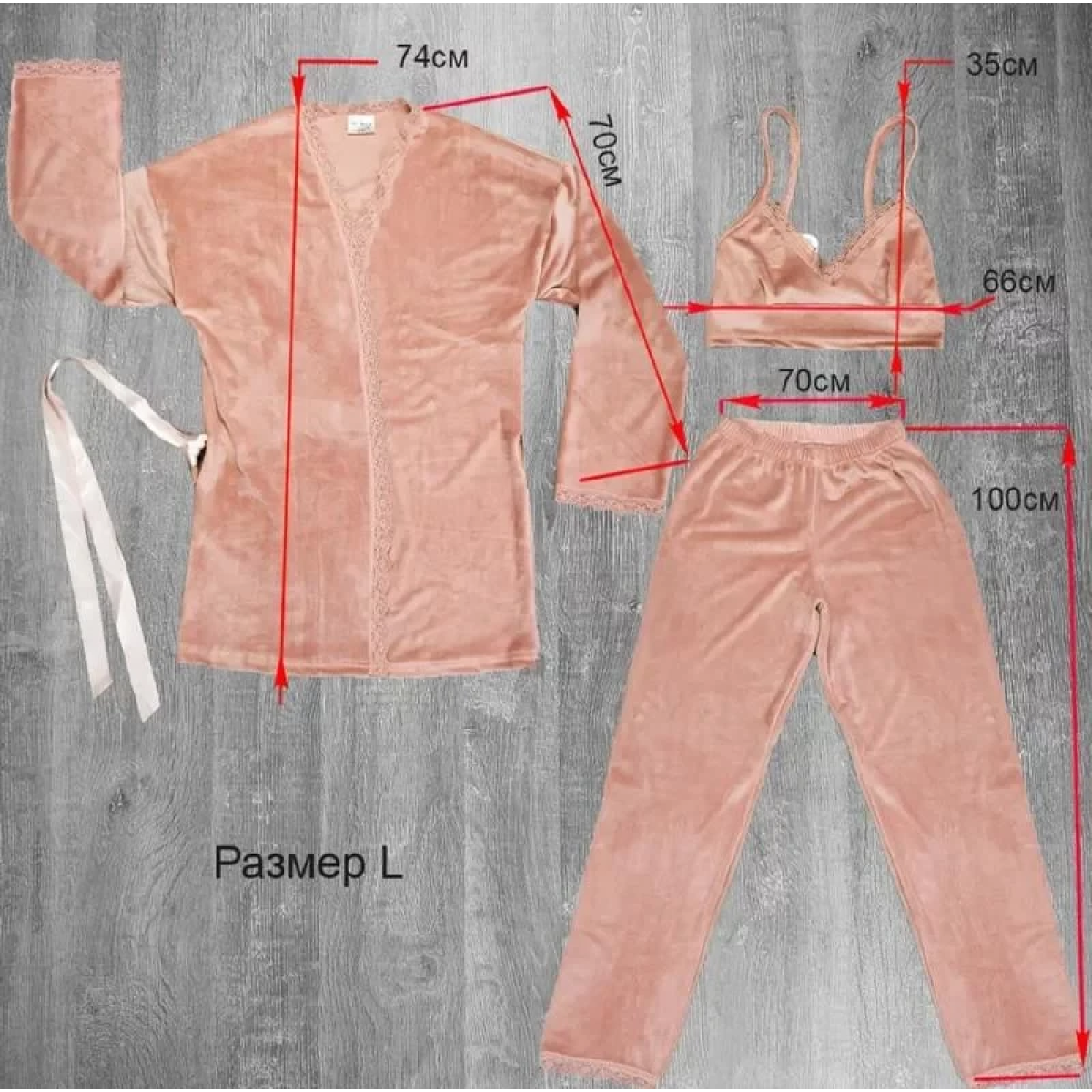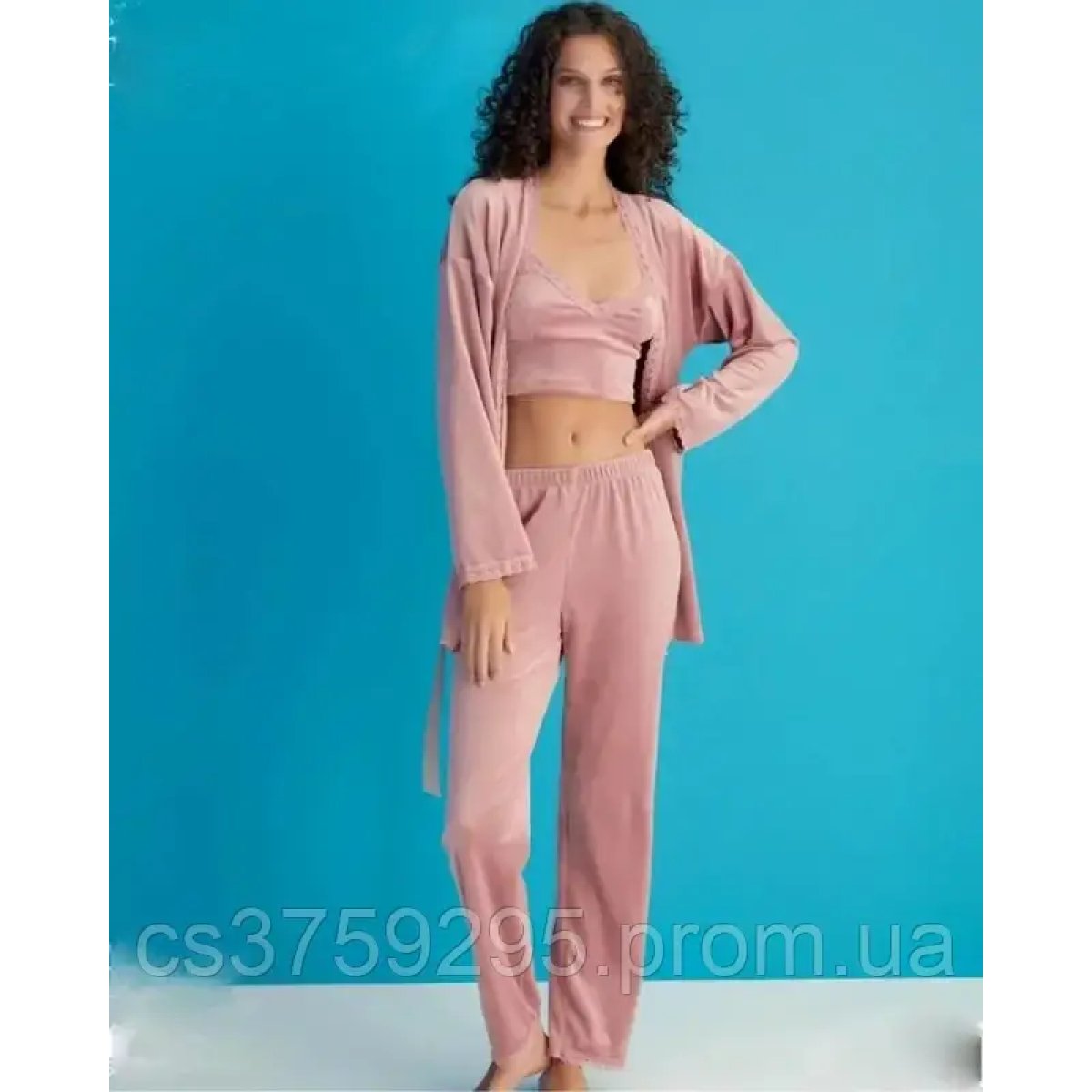 Костюм з велюра трійка - топ халат ,штани