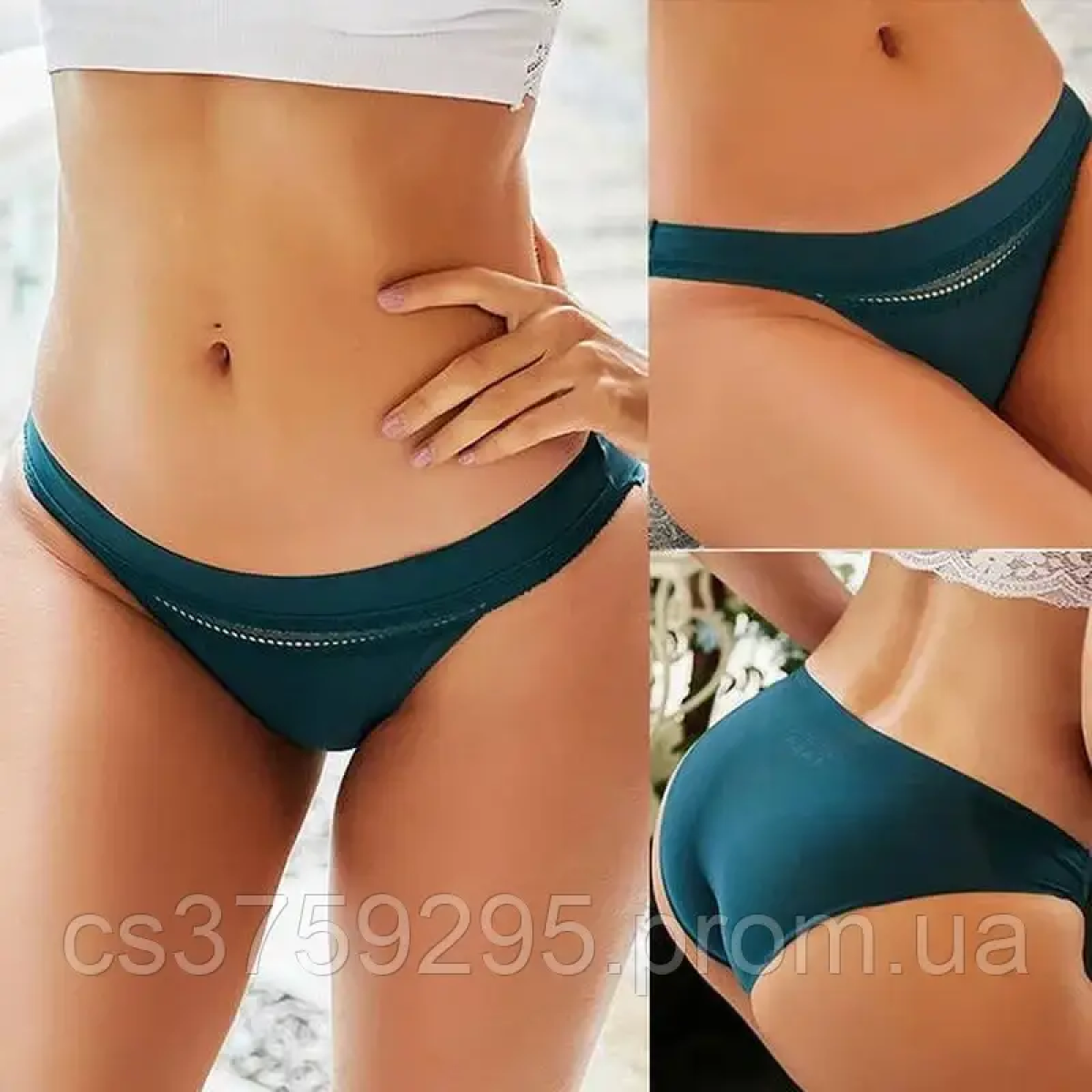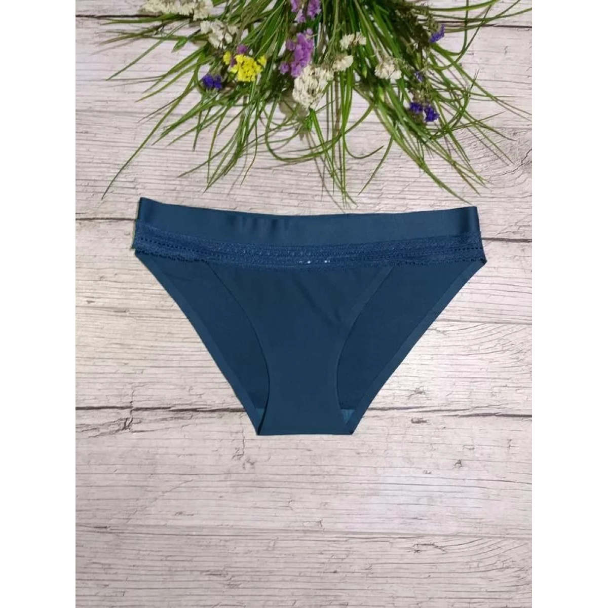 Трусики безшовні з мереживною вставкою смарагдові