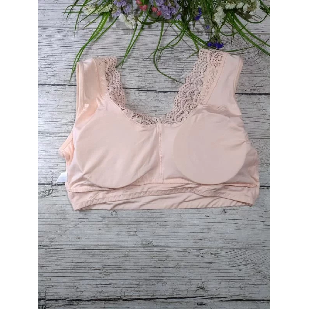 Топ на широких брителях з бавовни з мереживом з з“ємними чашками