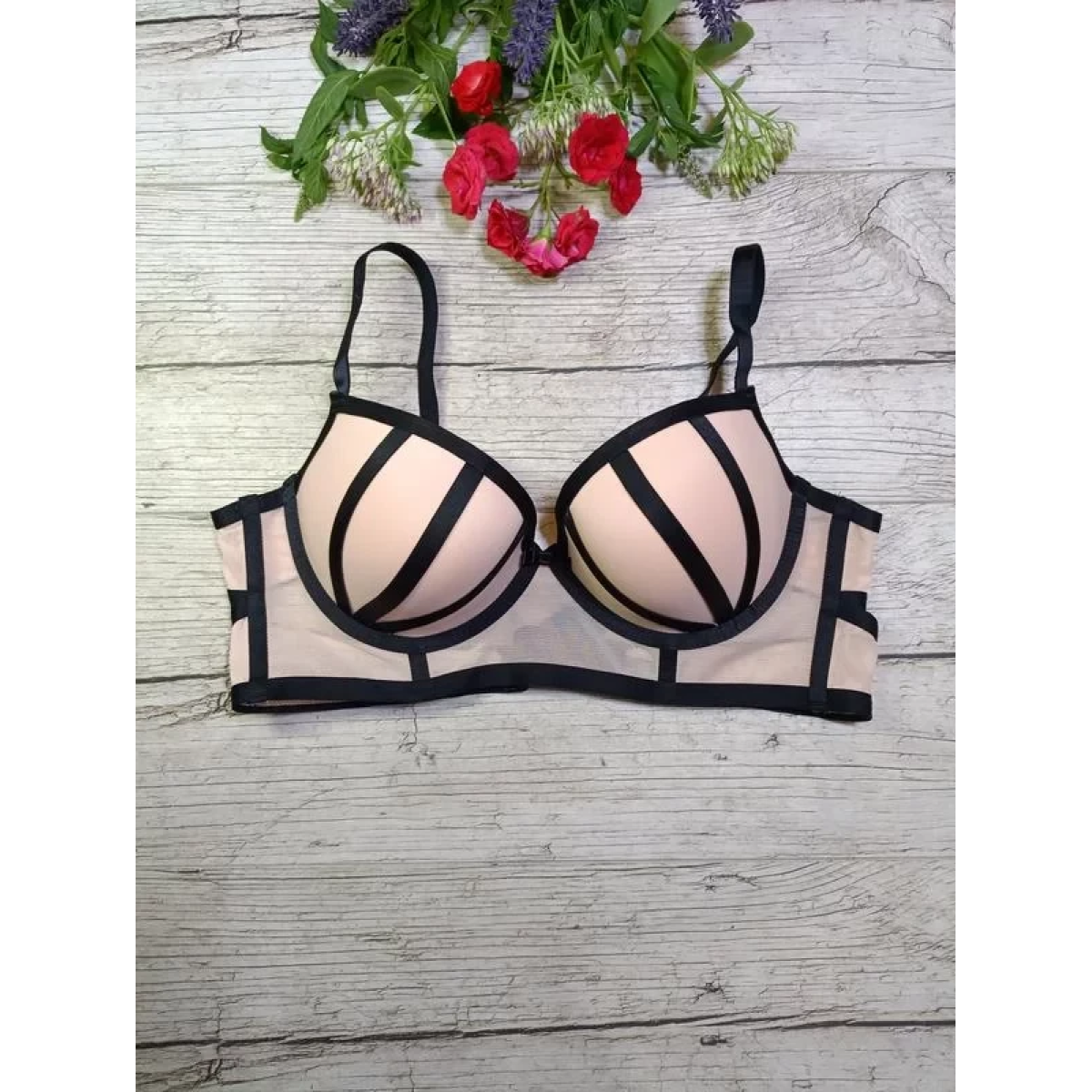 Бюстгальтер контрастний на пензликах без пушапу, м“який, формований