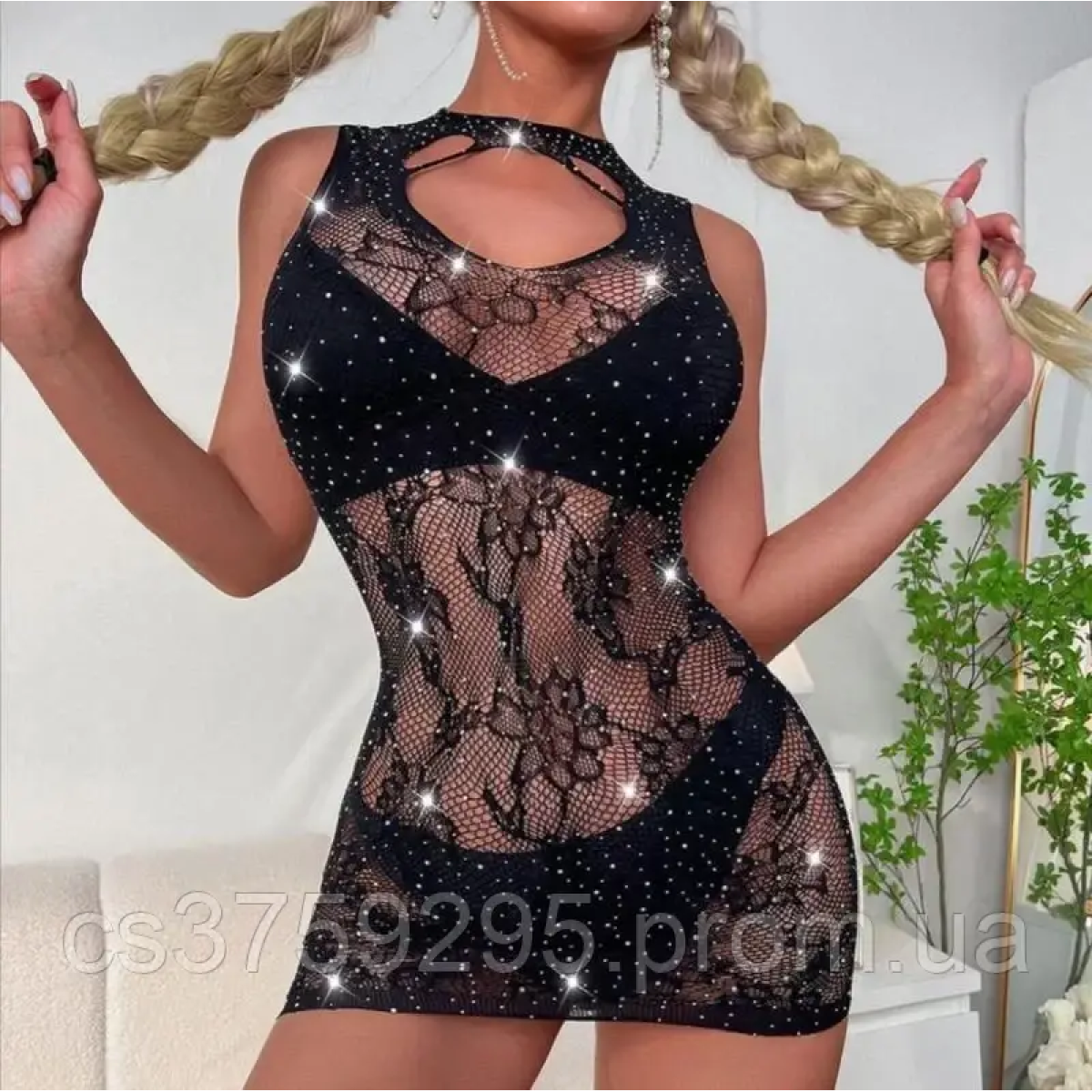 Пеньюар в візерунки з сітки та зі стразами