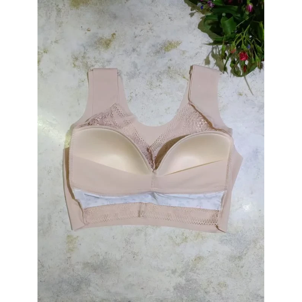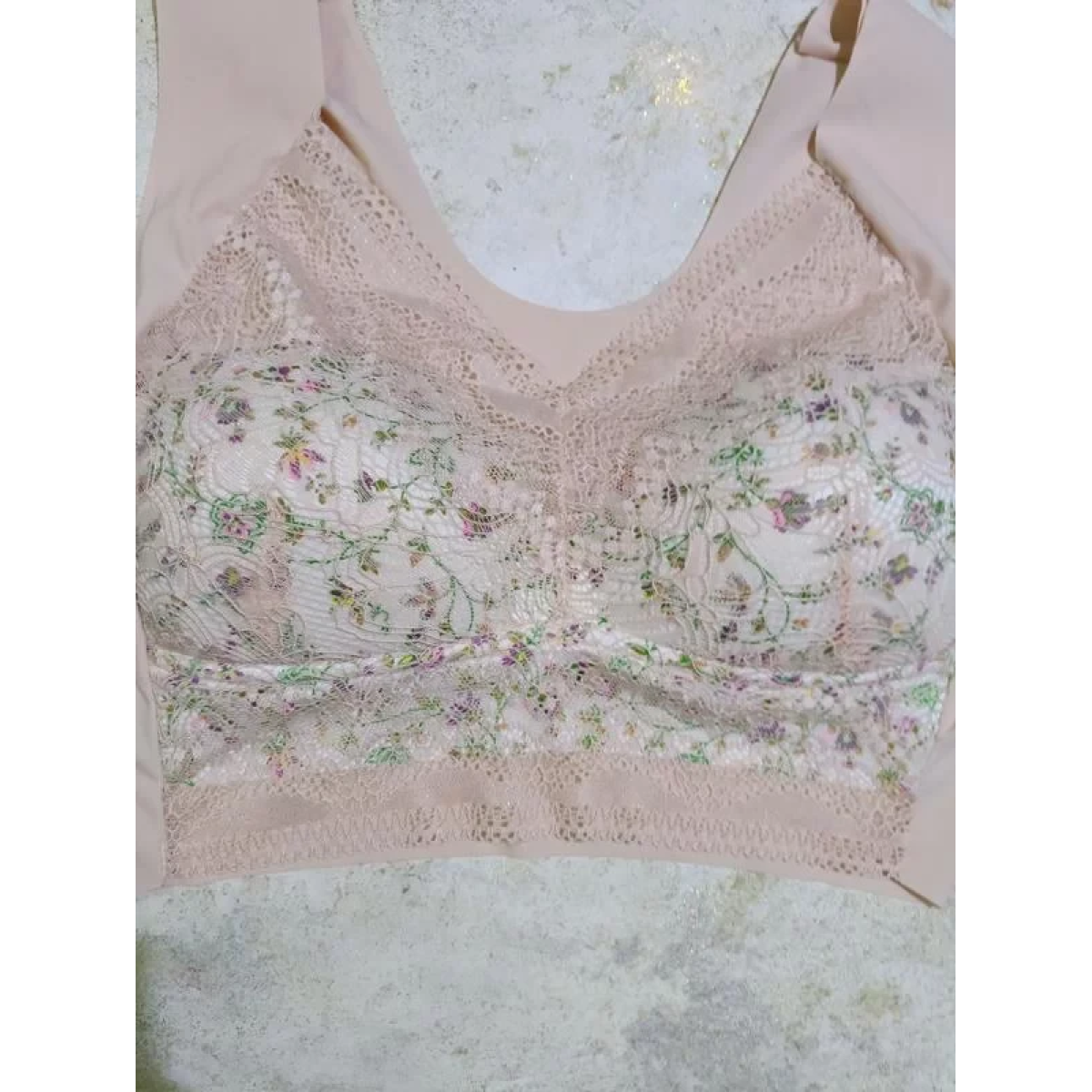 Топ з мікрофібри з мереживом на широких брителях
