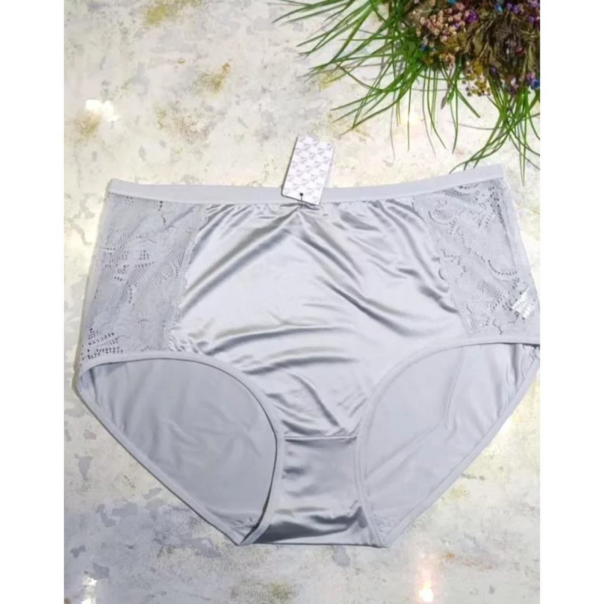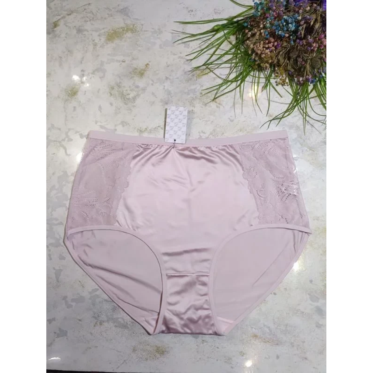 Трусики високі з мереживом з атлас стрейч