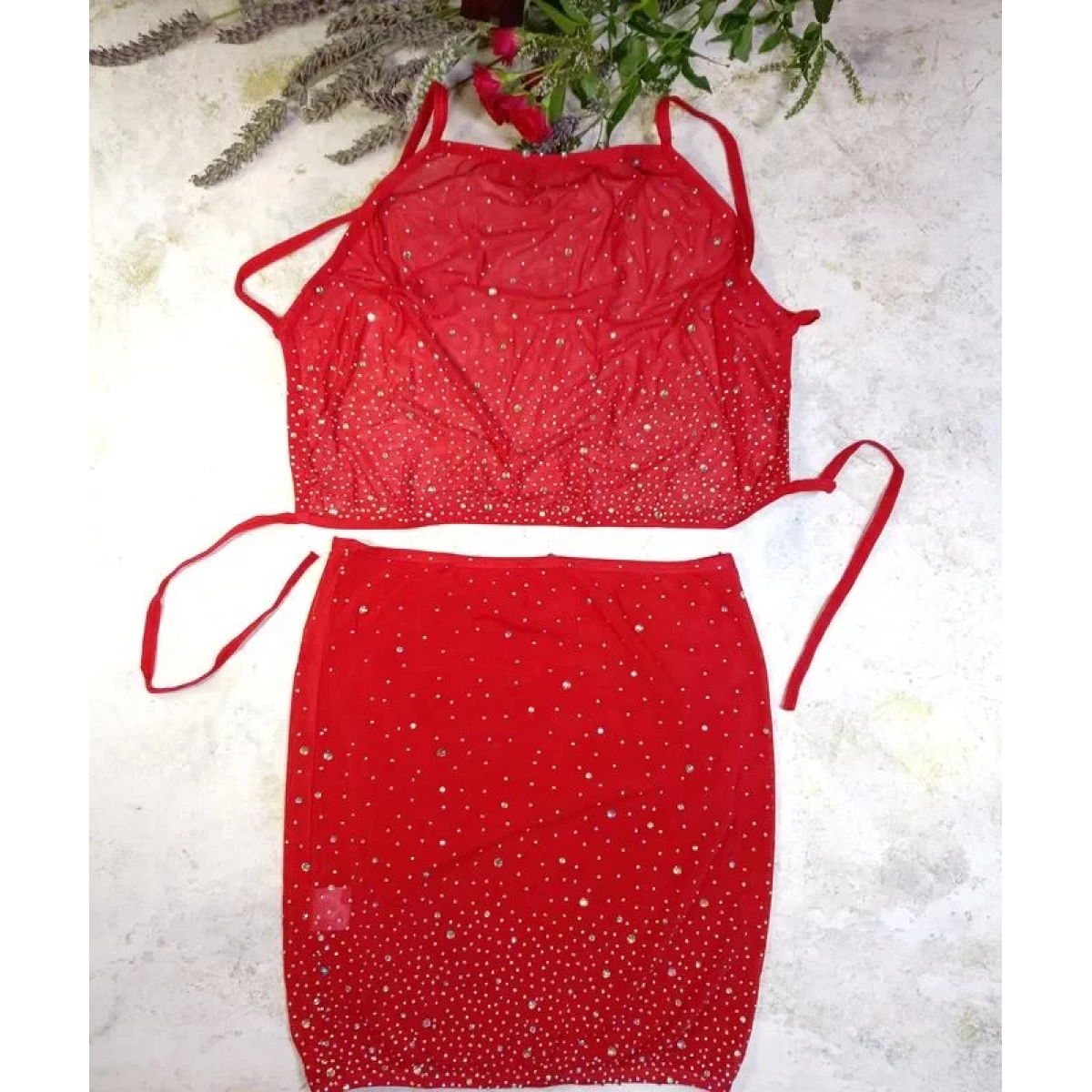 Комплект топ та юпка з сіточки стрейч в стрази ✨