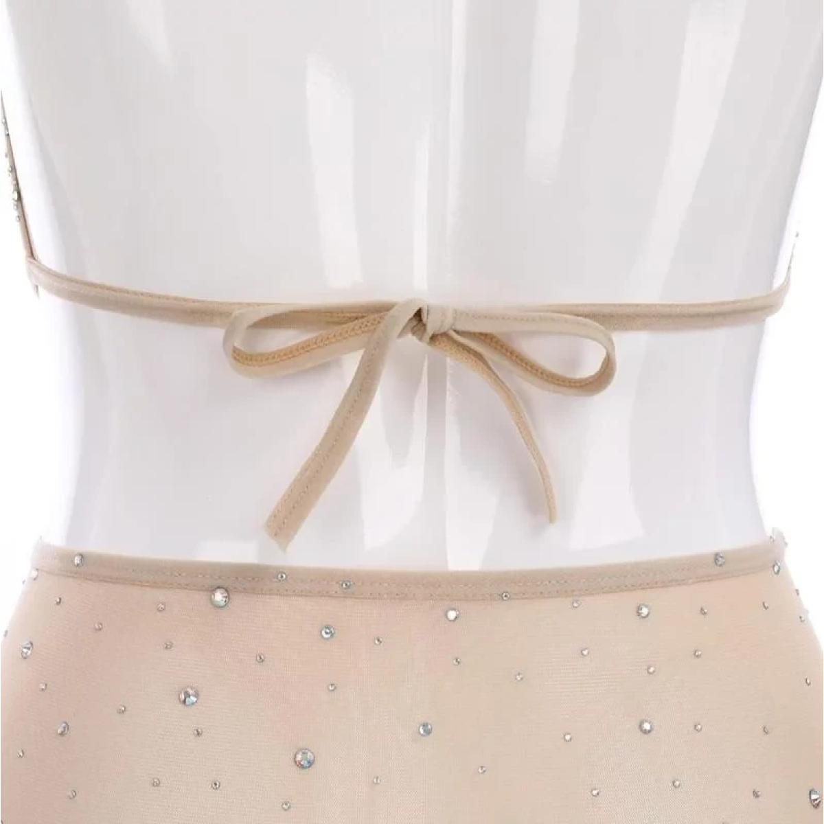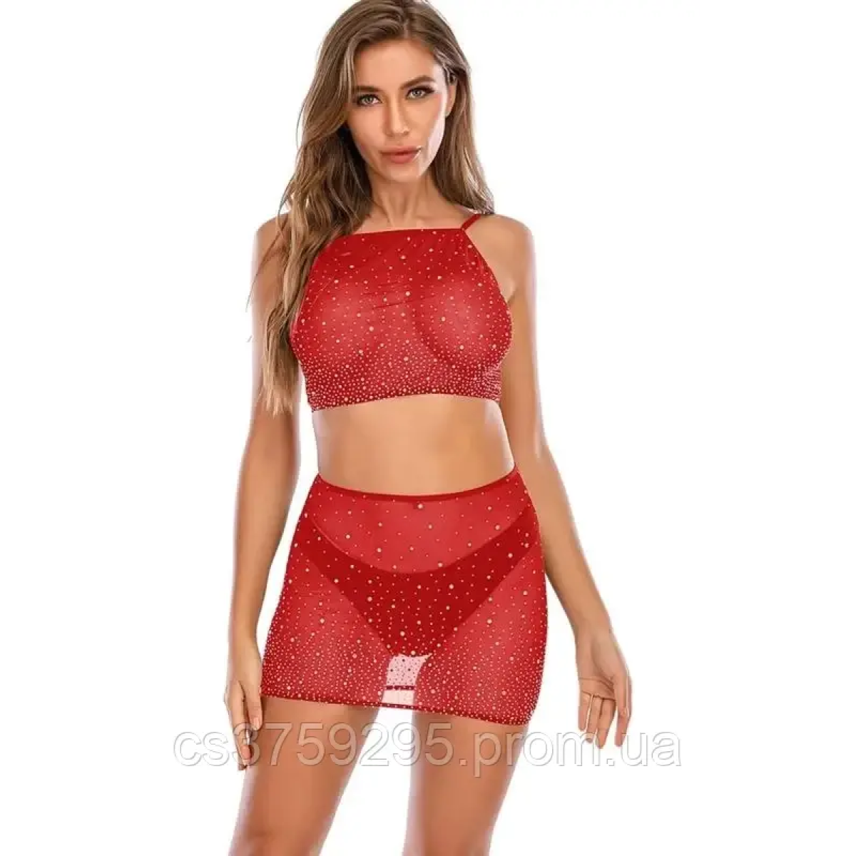 Комплект топ з відкритою спинкою та юпка з сіточки в стрази