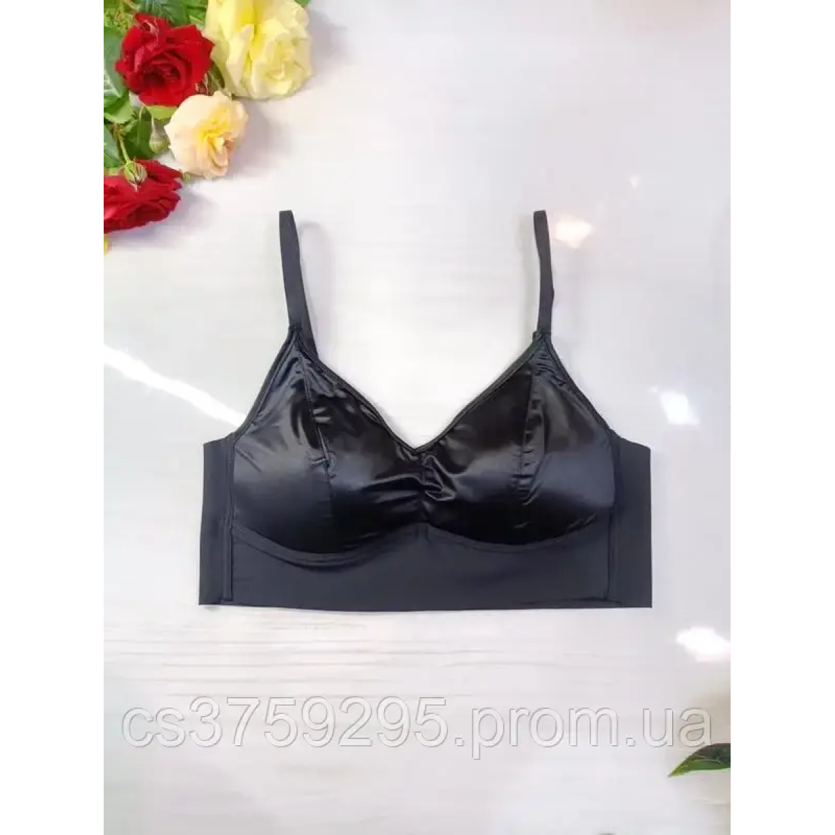 Топ з чашками з стрейч атласу на регульованих брителях , спинка широка , чашки не з“ємні на корректорі