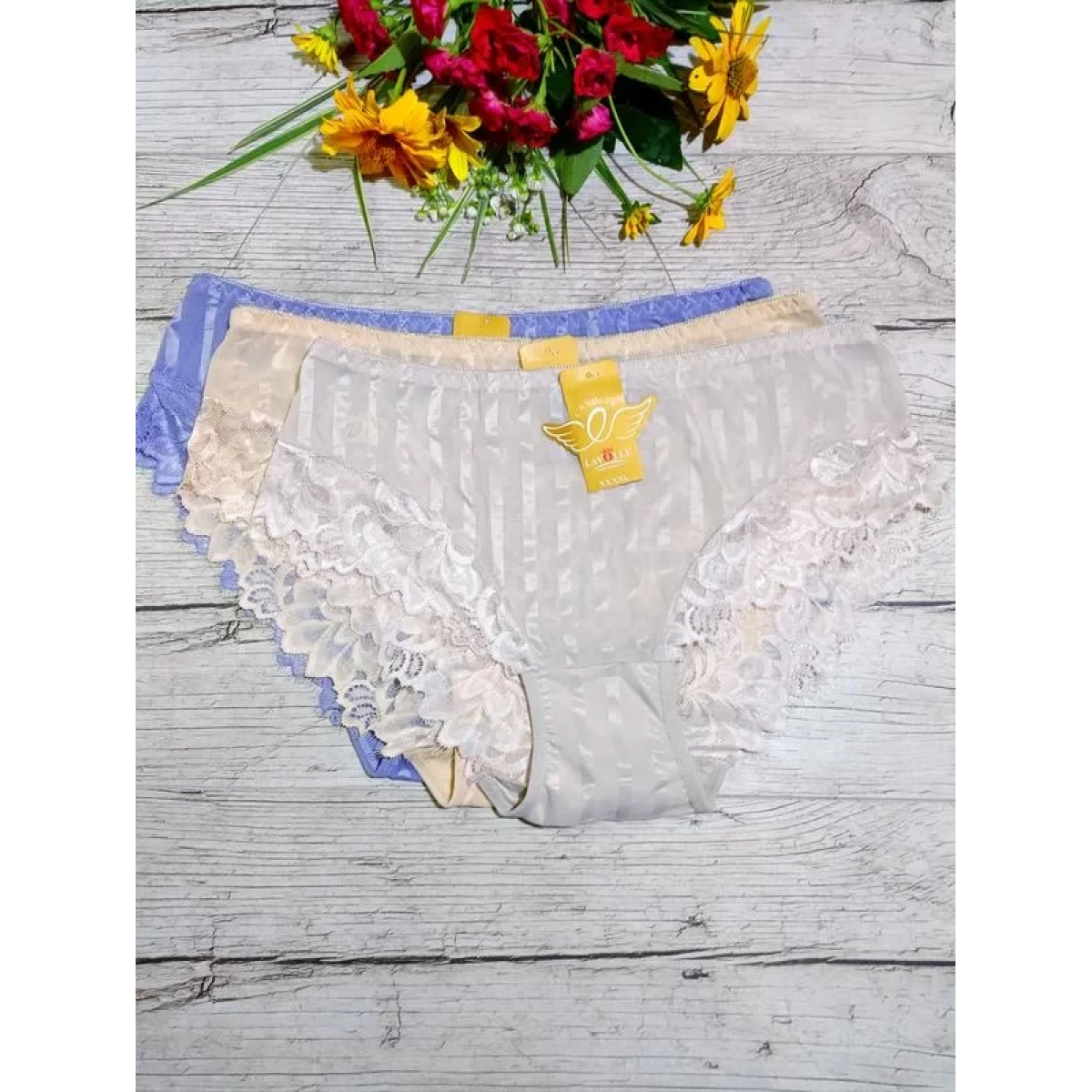 Трусики з мережива в шовковисті смужки