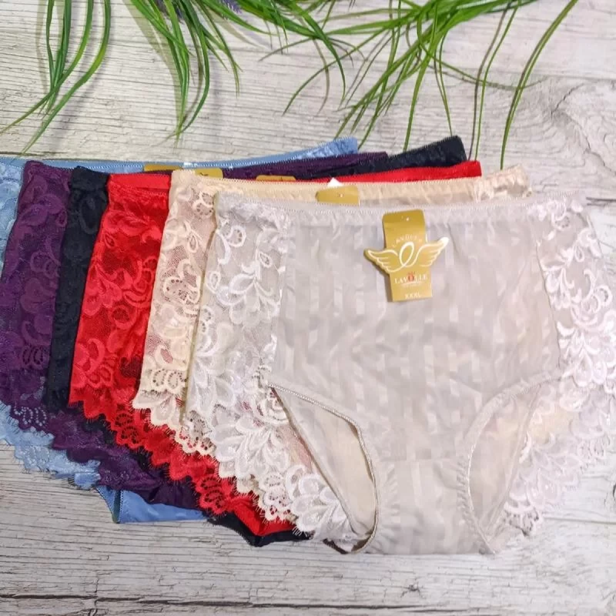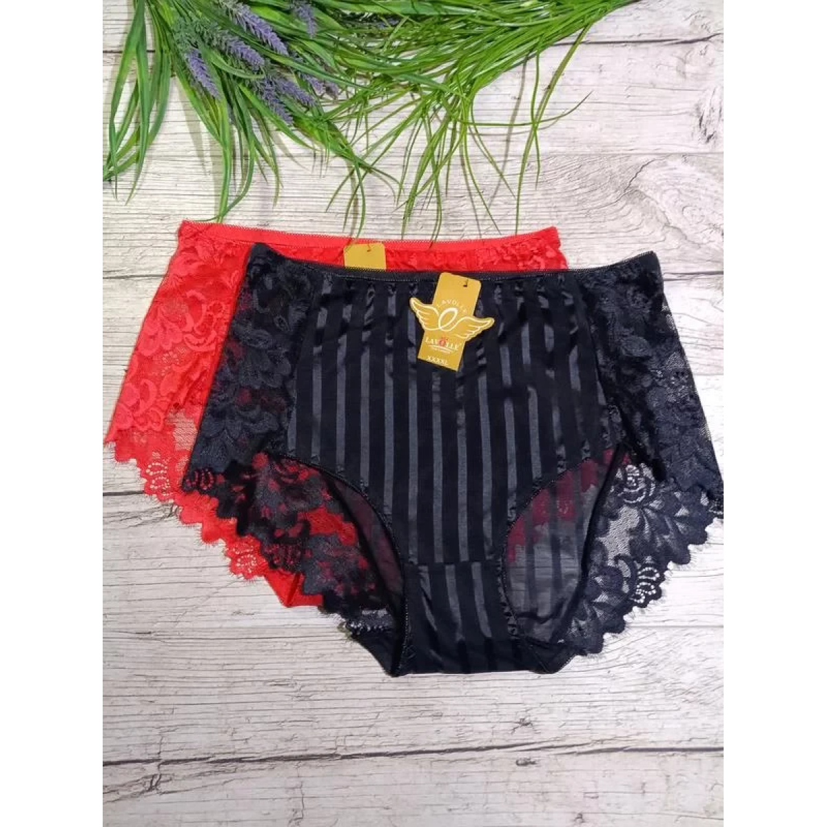 Трусики високі з мереживом в смужки шовковисті